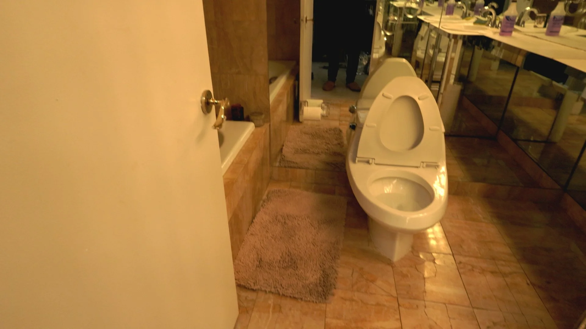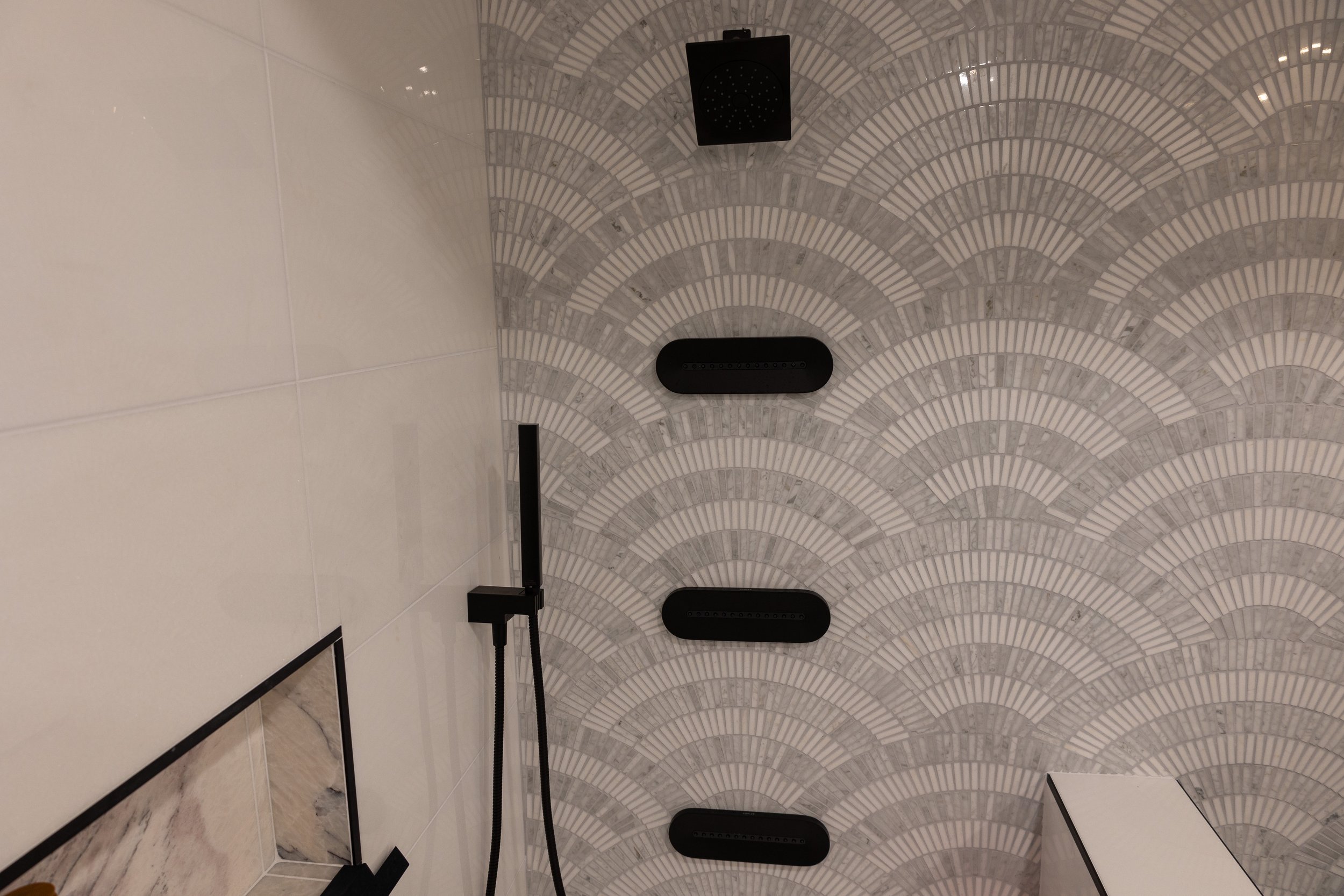 The client has a strong appreciation for natural materials, so marble became the primary surface throughout the space. The selected stone provides both elegance and visual texture while creating a striking contrast with the fixtures and architectural elements of the room.