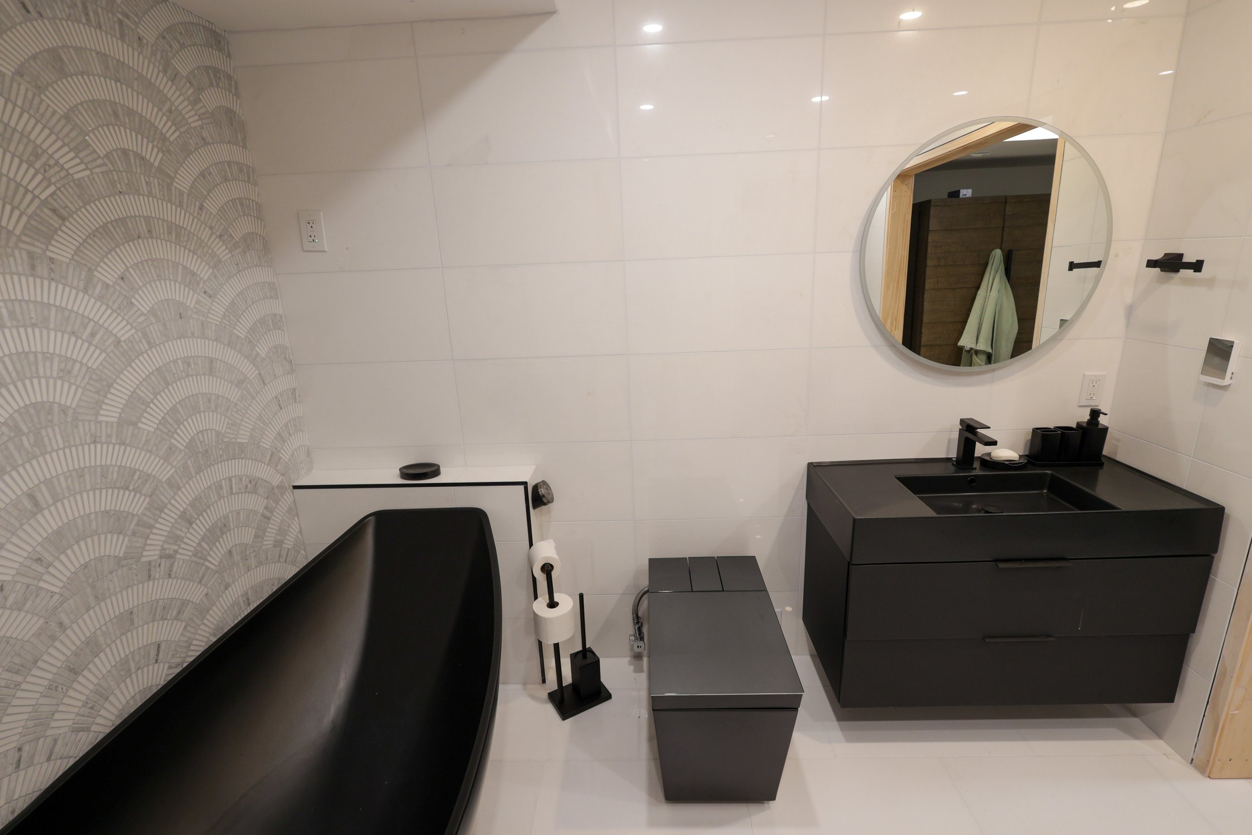 The finished bathroom is dramatic, refined, and deeply relaxing—exactly what the client envisioned from the beginning.